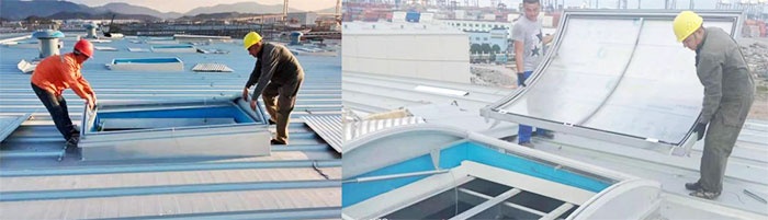 5120物資公司寧波工廠圓拱型天窗工程安裝實況