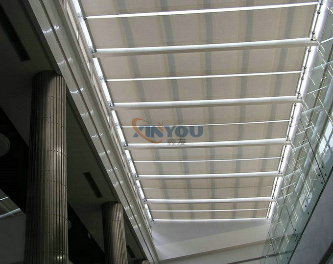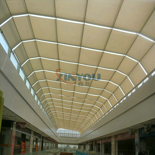 Application: Large sunshade place. The electric roof blinds is widely used in various of glass and daylighting roof in level and bevel.